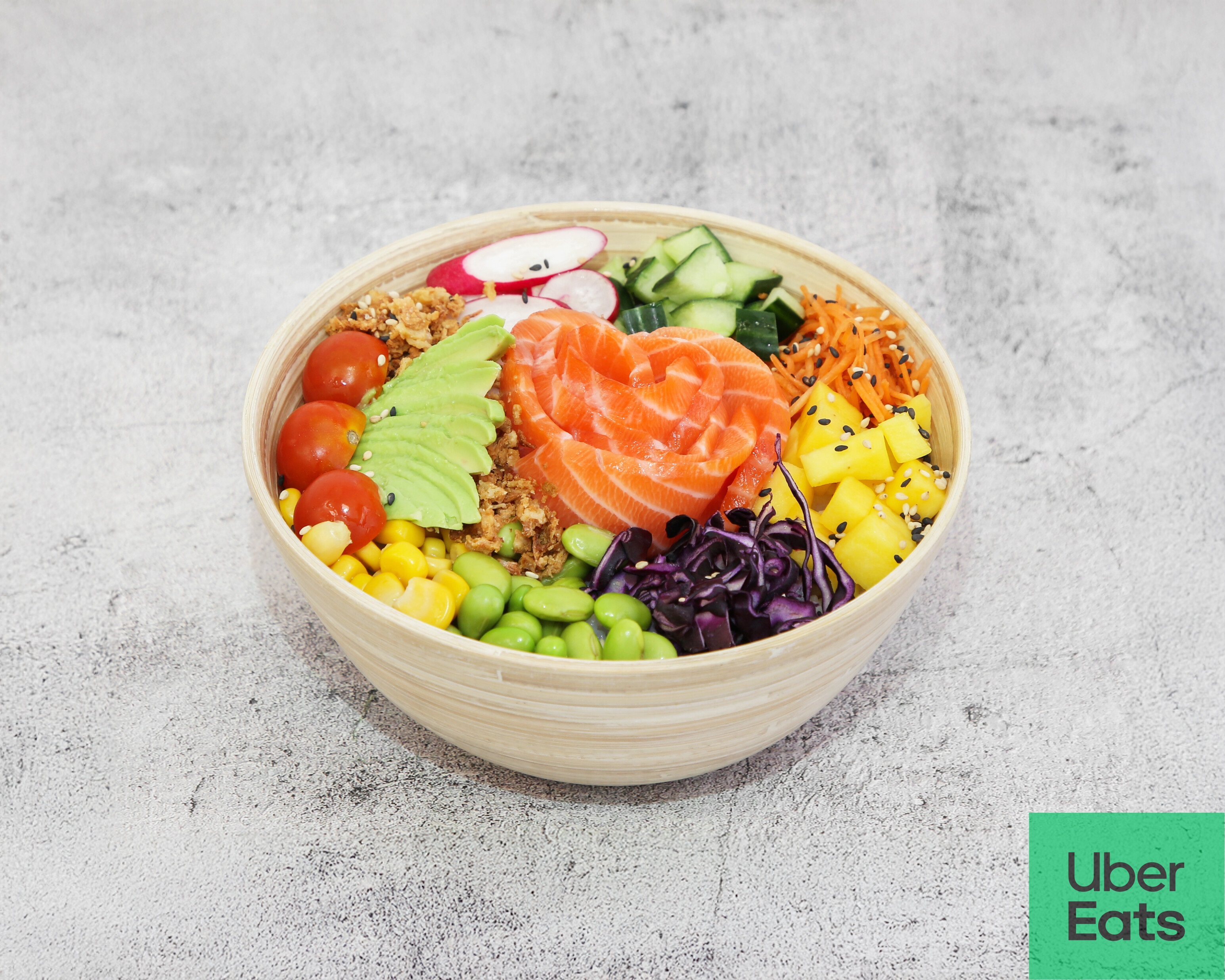 ingrediants:avocat, edamame, concombre,mais, radis,mangue,oignion frit, carrot,choux rouge, wakame,sesames