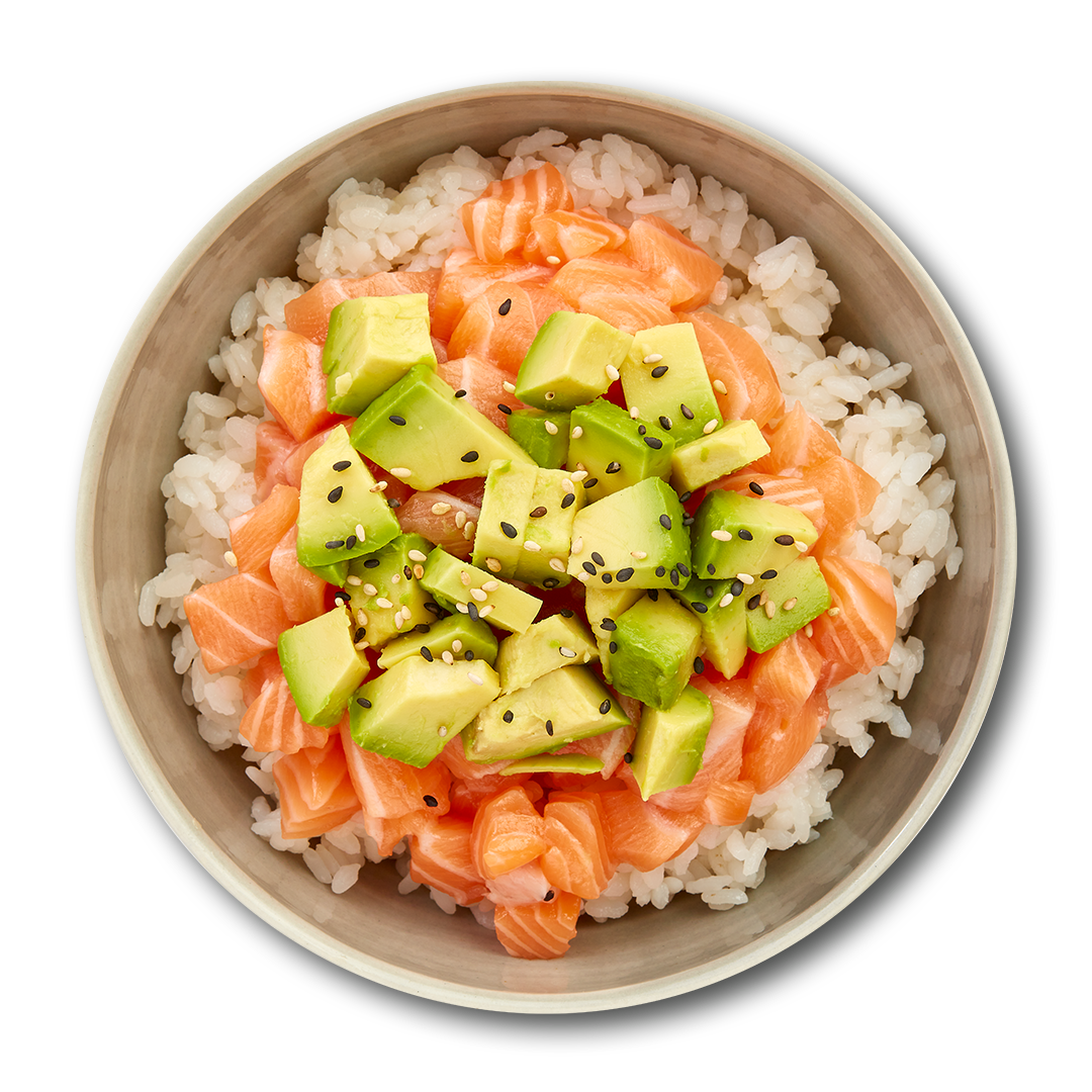 base:riz vinaigre,saumon au tartare,avocat,sesames
